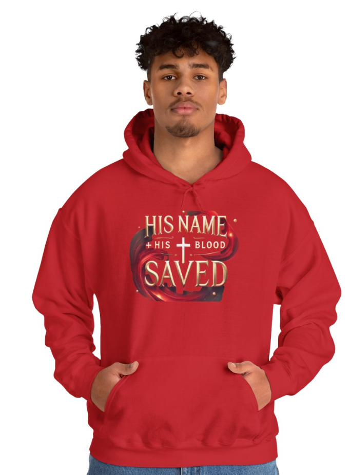 Wrap yourself in comfort and faith with our bold Red Gildan Hoodie, featuring the powerful message: